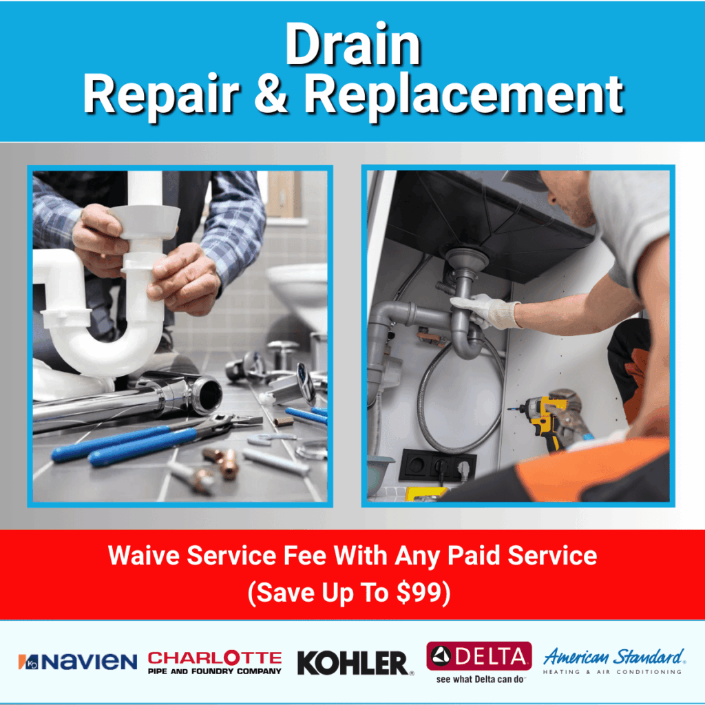At KMP Plumbing, Heating & Air, we handle all types of drain issues—from cracks and blockages to corrosion. Using advanced methods like hydro jetting and trenchless technology, we effectively repair or replace damaged pipes with minimal disruption. Our team thoroughly inspects your plumbing system to recommend the best solution, ensuring your drains function smoothly and last longer. Trust us for fast, reliable drain repair and replacement that protects your home and budget.